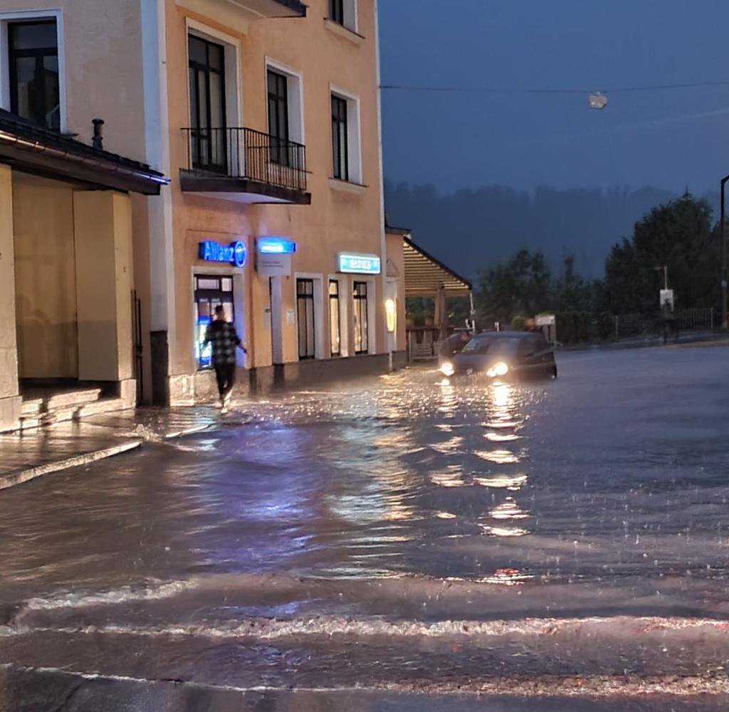 Nach den schlimmen unwettern in deutschland hat eine schlechtwetterfront auch österreich erreicht. In weiten teilen des landes begann es in den nachtstunden heftig zu regnen. Auf bildern sind krasse überschwemmung und schlammlawinen zu sehen. Katastrophale flut in hallein (österreich): Überschwemmungen> povodeň f, záplava f (a fig).